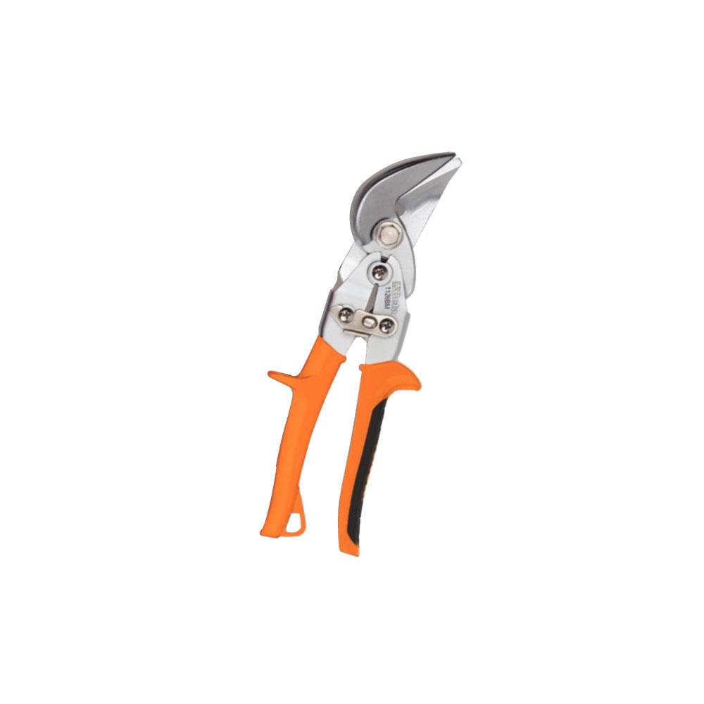 Modello doppia leva con lame curve Esecuzione cromata Impugnatura bimateriale antiscivolo Adatta per tagli diritti passanti e contornare SX Spessore max taglio lamiera inox mm 1