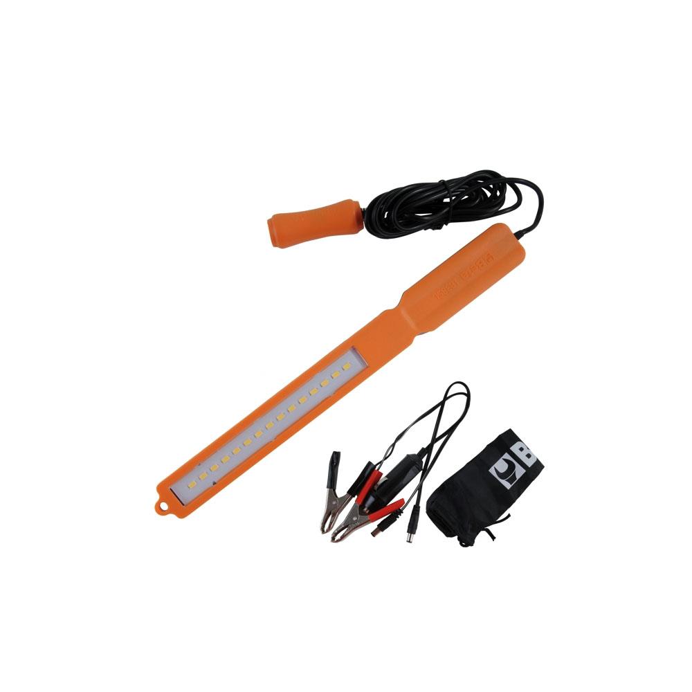 Lampada portatile 15 led Corpo plastica antiscivolo colore arancio Ultra sottile mm 6 - Cavo alimentazione m 2,5 Gancio appendere - Custodia morbida Alimentazione accendisigari o batteria auto