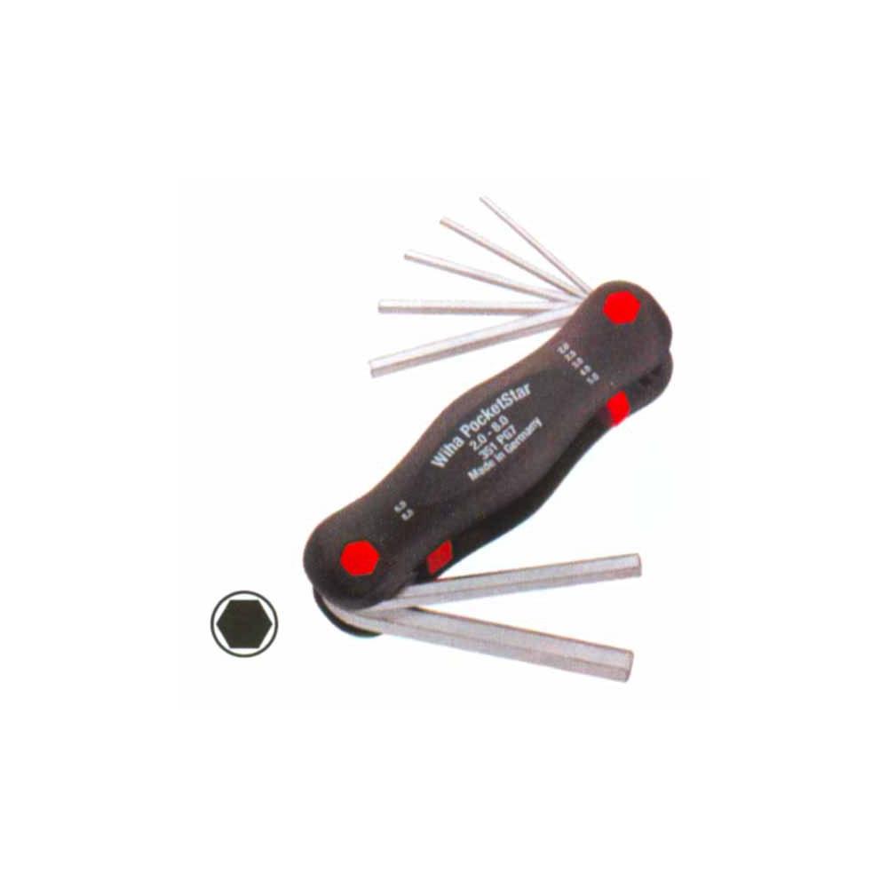 Serie Pz 7 chiavi esagonali pieghevoli Modello pieghevole grande Estremita' piane e smussate Acciaio Cromo Vanadio galvanico calamitato Composizione:2-2,5-3-4-5-6-8