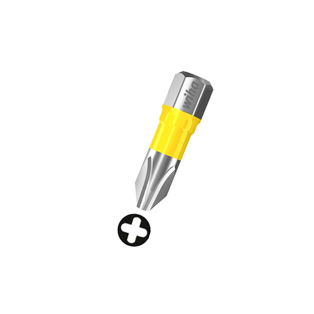 Inserto per viti croce philips Acciaio brevettatotorsione controllata Torsione massima 40^ Ideale per viti testa svasata Utilizzabili con avvitatoread impulsi Segnalino giallo per facile individuazione Attacco 1/4" - Lunghezza mm 25