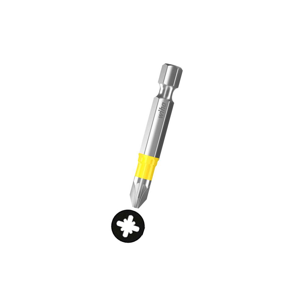 Inserto per viti croce pozidriv Acciaio brevettato torsione controllata Torsione massima 40^ Idealeper viti testa svasata Utilizzabili con avvitatore ad impulsi Segnalino giallo per facile individuazione Attacco 1/4" - Lunghezza mm 50